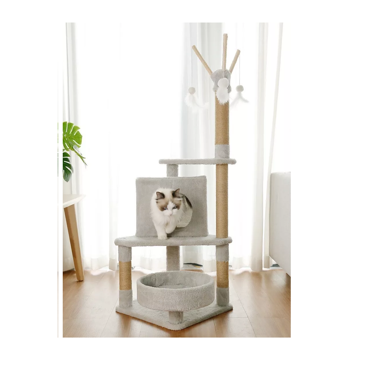 - Material: Cuerda de sisal, tela de felpa, madera comprimida