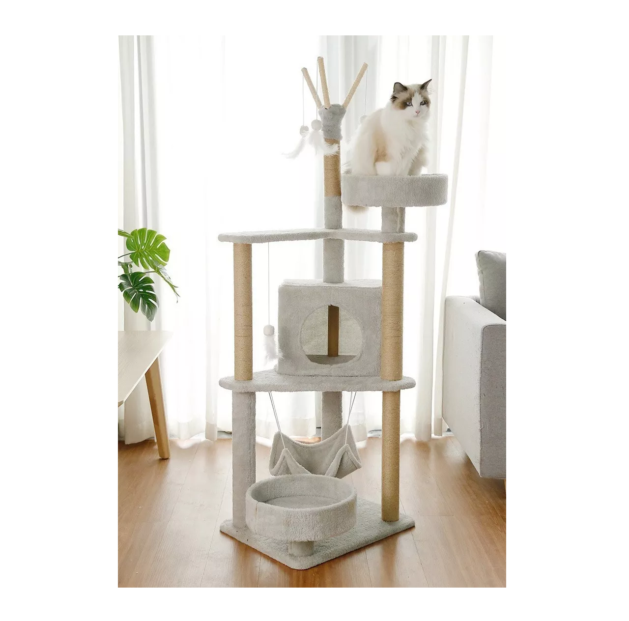 POSTES CUBIERTOS DE SISAL: Múltiples postes reforzados con cuerdas de sisal natural son perfectos para que tus gatos rasquen y afilen sus garras. También desarrolla un hábito positivo de rascador, mantiene a tu gato activo y entretenido.